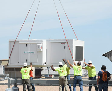 RapidHeli services in Sioux Falls use helicopters as the standard practice for HVAC transport and installation. Helicopter lifts provide an easier, safer, less manpower intensive solution to HVAC unit placement. RapidHeli projects use helicopters to complete commercial HVAC unit installations in a few hours, where a ground crane would have taken substantially longer.